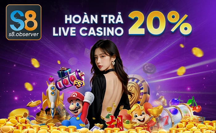 Live casino S8 – thiên đường cá cược đỉnh cao với các tựa game baccarat, roulette, blackjack, sicbo,… được thiết kế bắt mắt, sống động như đang trải nghiệm cá cược tại các sòng bài thật ở Macao. Ngoài ra tất cả các tựa game tại sảnh casino S8 đều được áp dụng ưu đãi hoàn trả tối đa lên đến 20%.